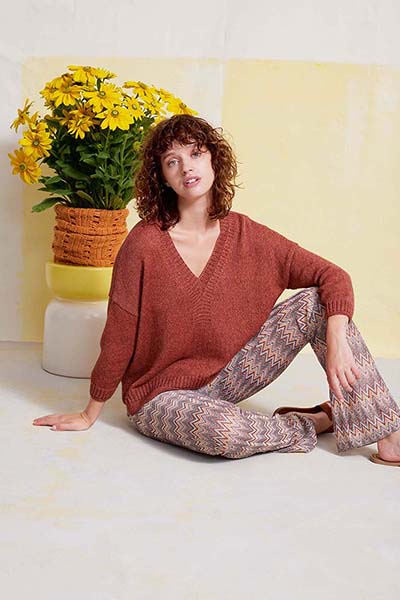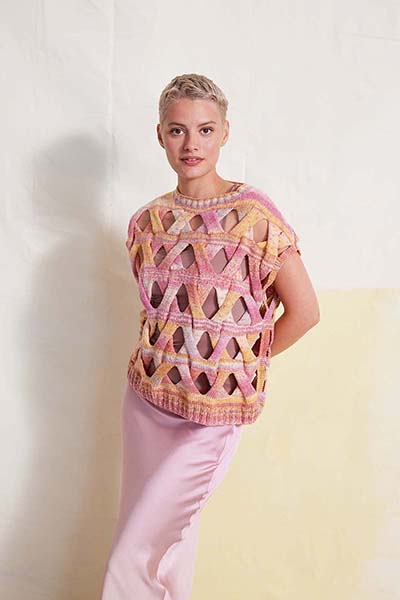 Denken Sie an luftige, weit geschnittene Shirts mit leicht zu strickenden Lochmustern, texturierte Cardigans als Layering-Elemente sowie auffallende Röcke und Kleider.